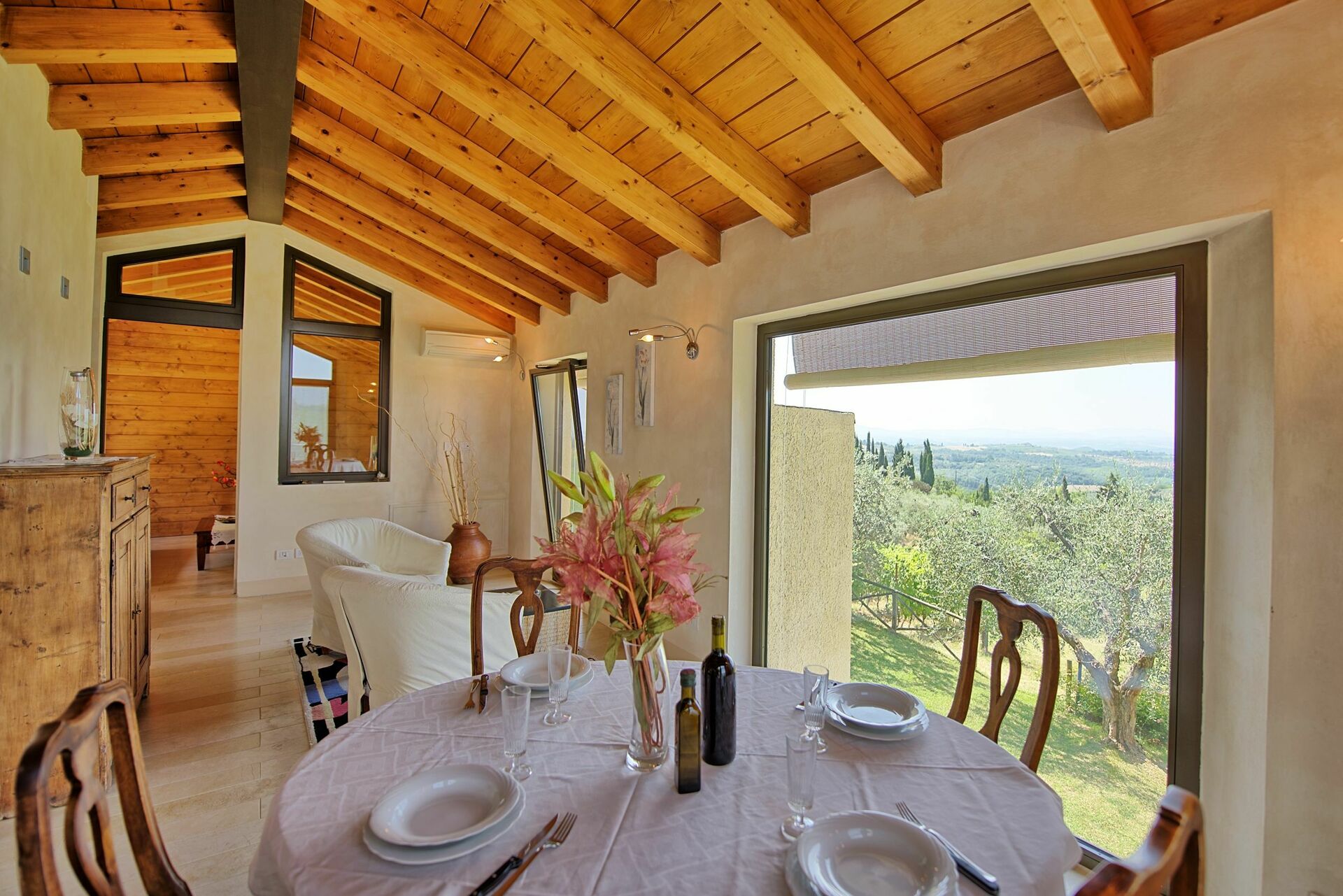 Nice independent house for rent with pool situated in a fantastic position offering beautiful panoramic views over the Tuscan hills and the towers of San Gimignano in the distance.The Toscana territory and particularly the area of Chianti offers all the culinary, natural and historical characteristics typical of this enchanting location in Chianti.