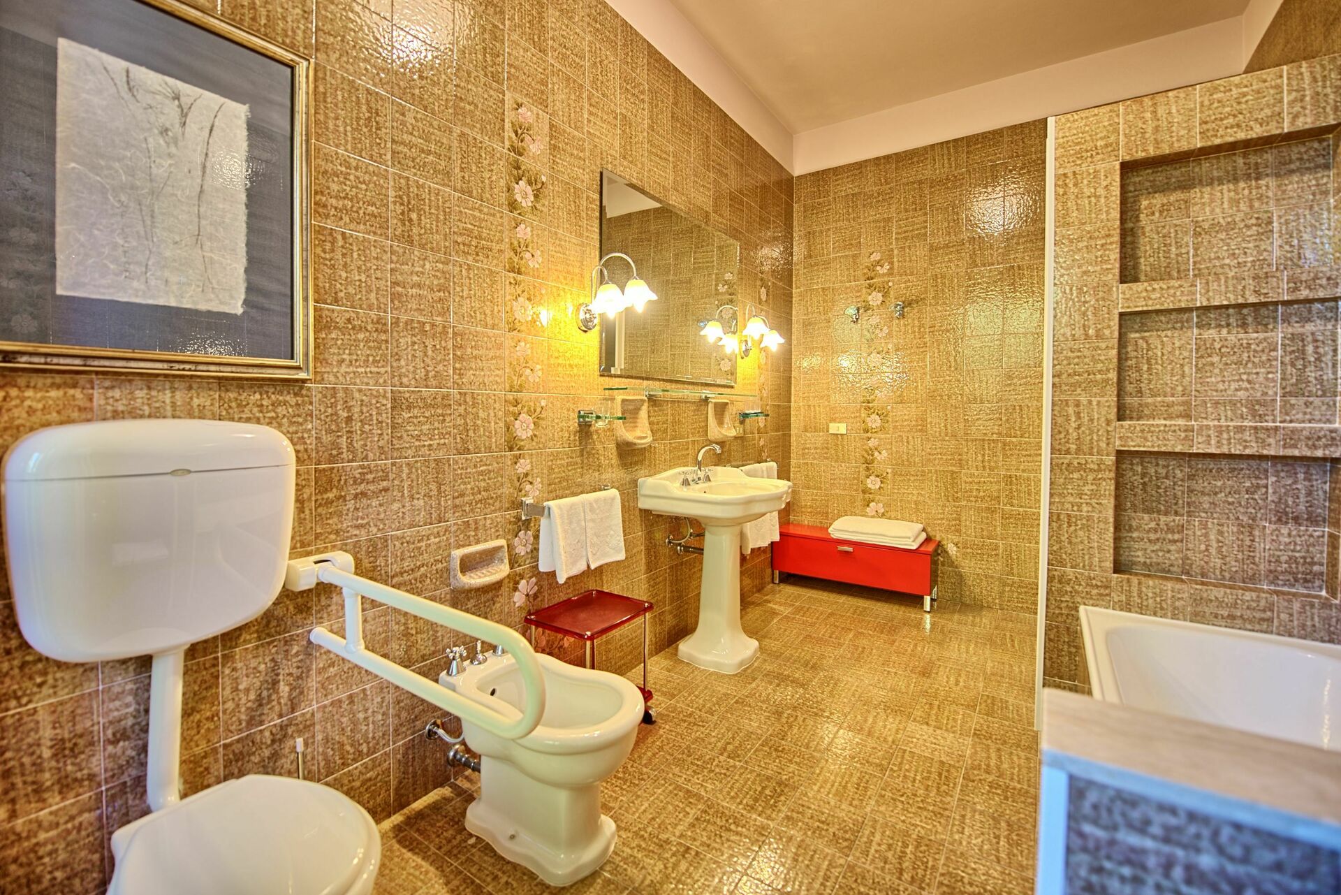 We loved the big rooms, the huge living area and the park around the villa.