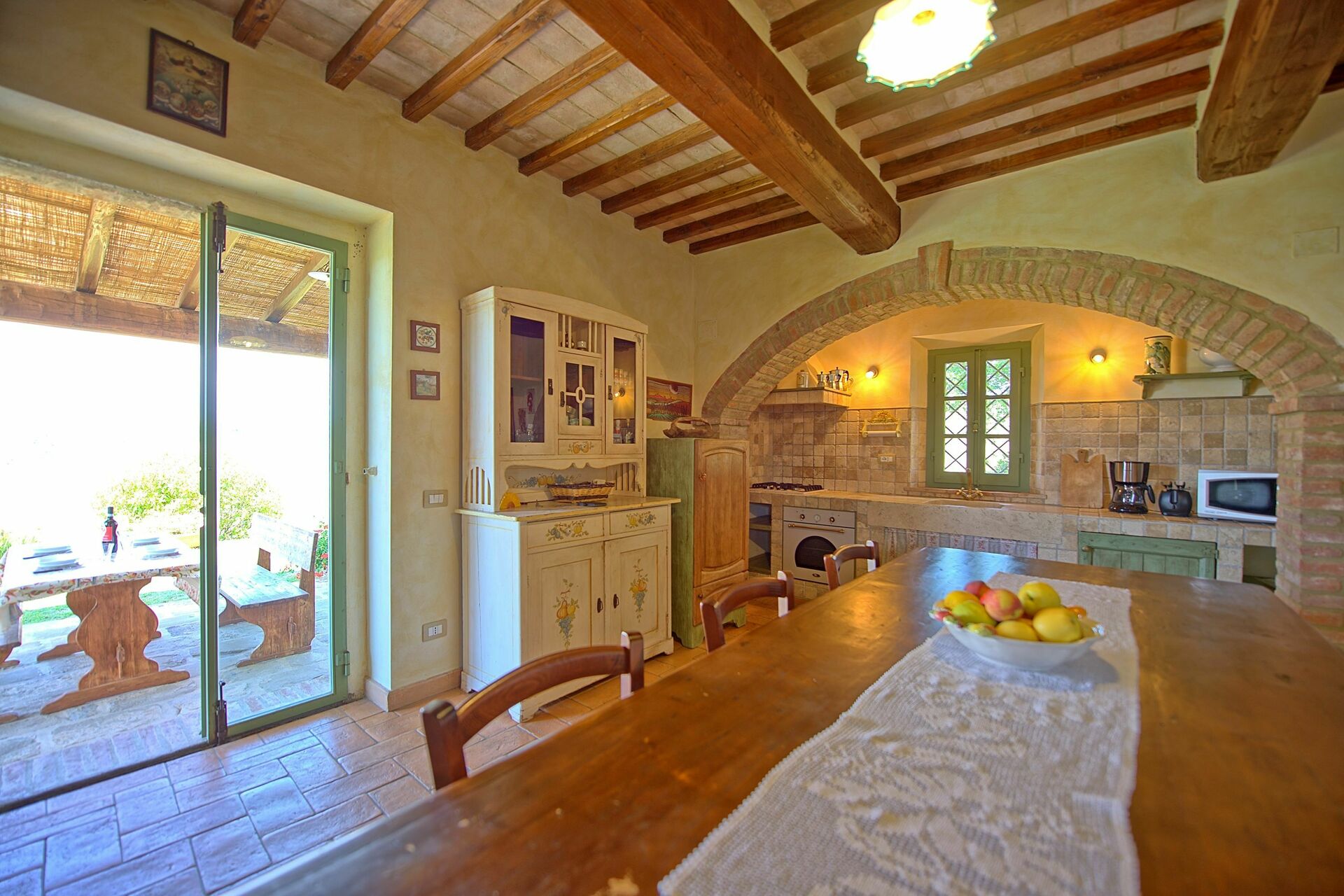 Castelmuzio offers a beautiful pool to live hours of relax with family and friend, a spacious garden for the outdoors days equipped with a barbecue area which enhances your summer feasts, a lovely fireplace which makes the ambience warmer and comfortable on colder days. The house has been skilfully restored preserving its original architectural features and turned into a comfortable country accommodation offering tastefully furnished interiors. This nice property enjoys extensive views over the surrounding hills and valleys.