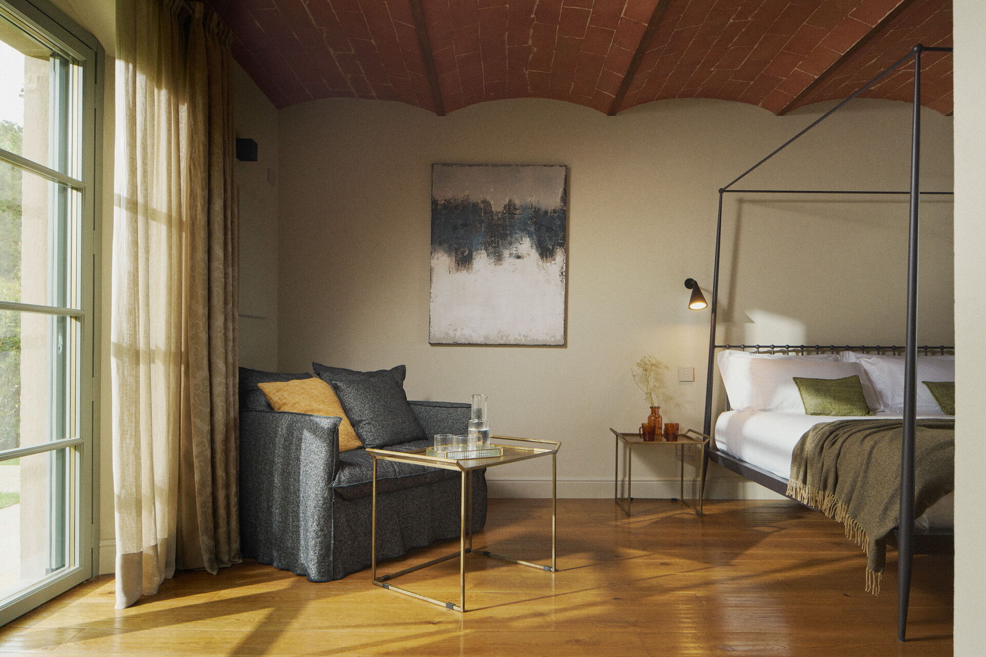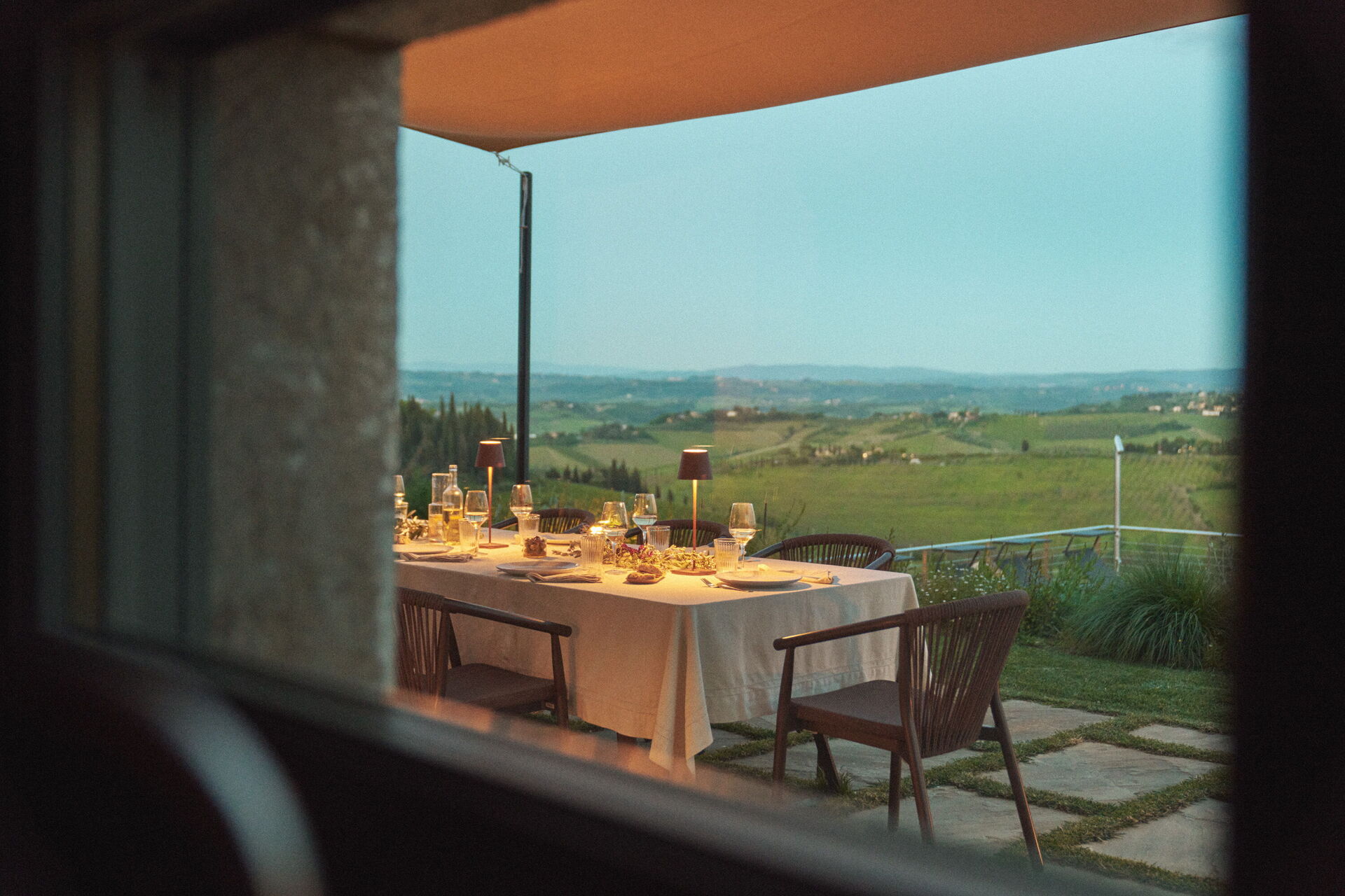 On the grounds there is a large, well tended garden and an outdoor dining area where guests can enjoy enchanting panoramic views of the Chianti hills and the renowned towers of San Gimignano.