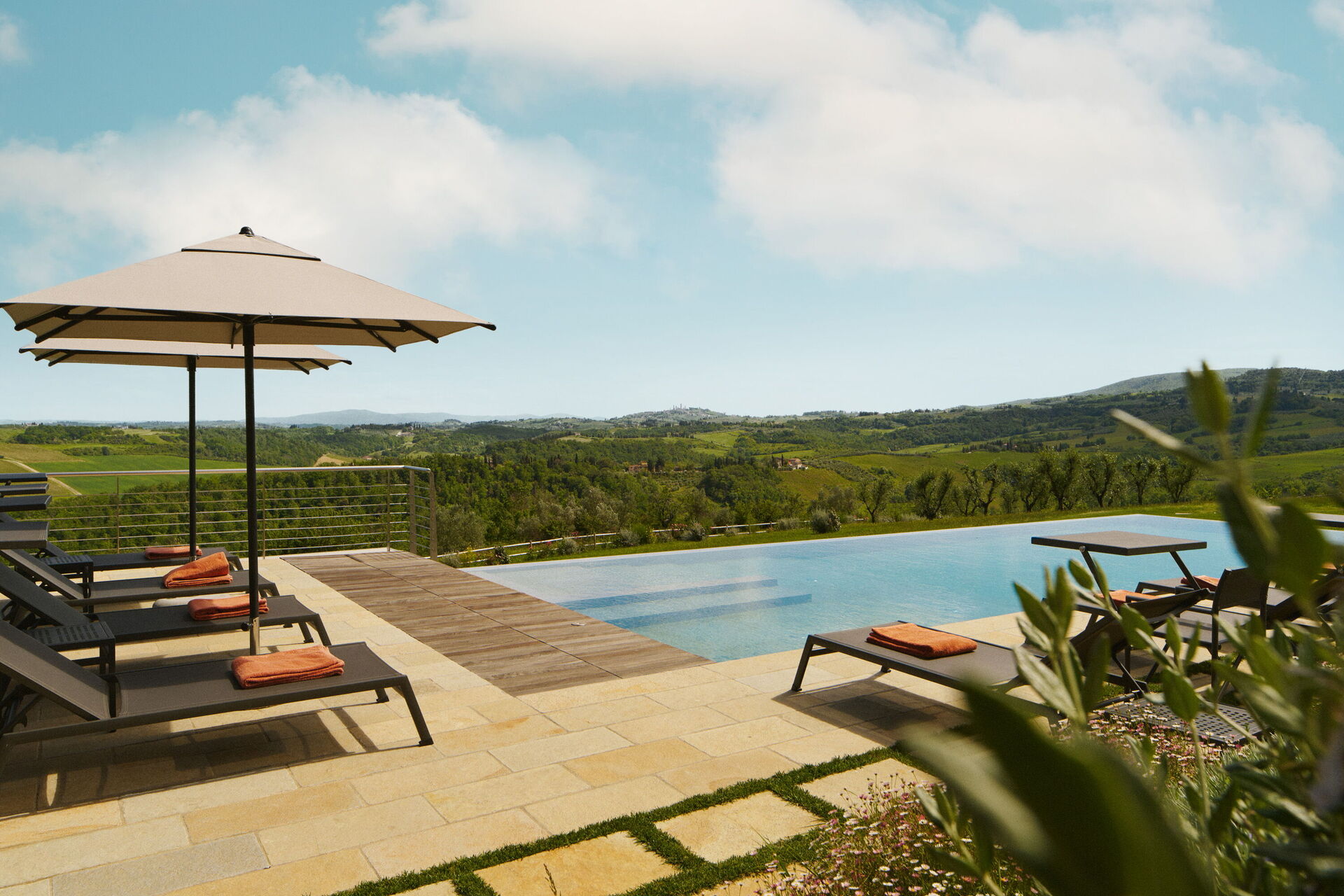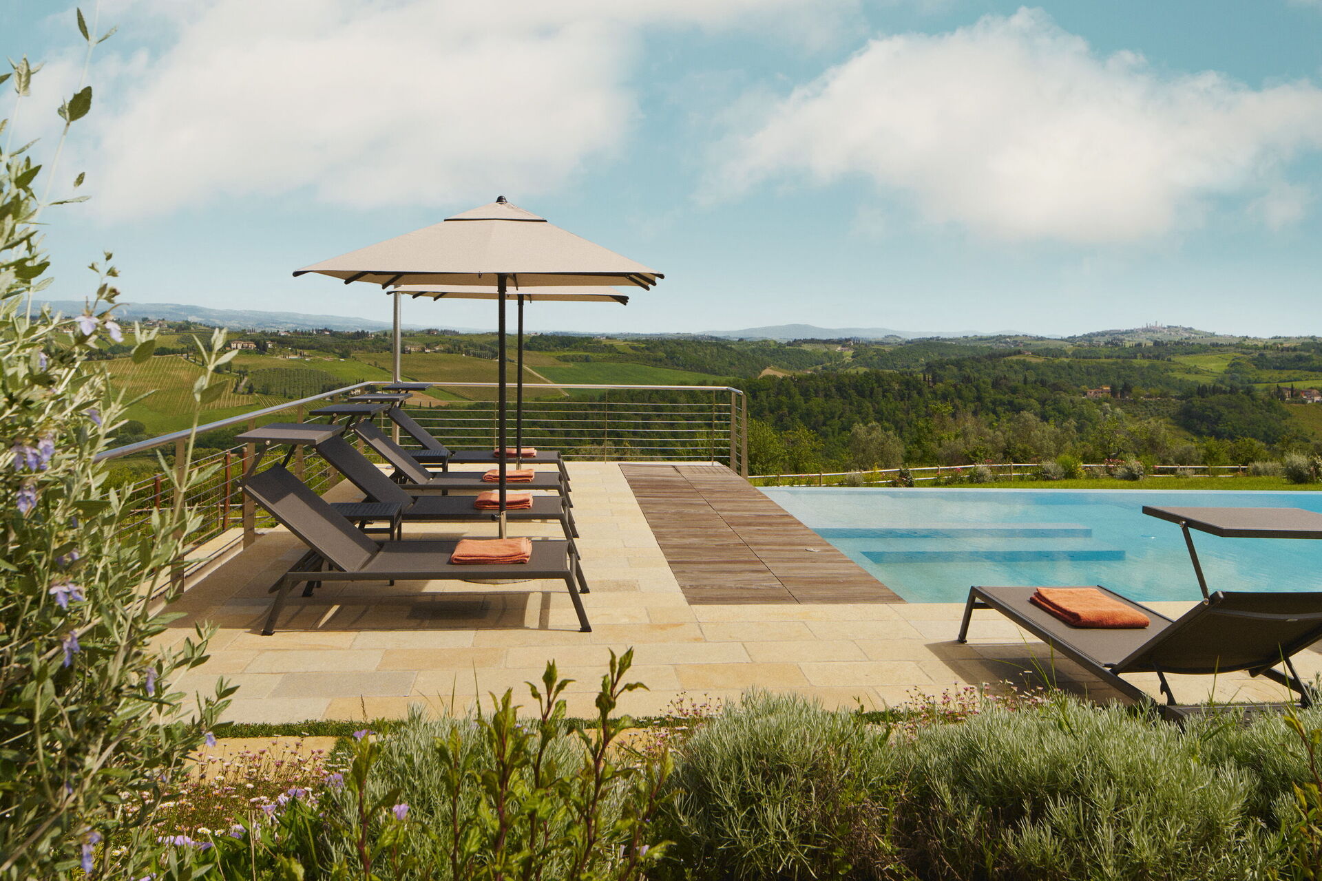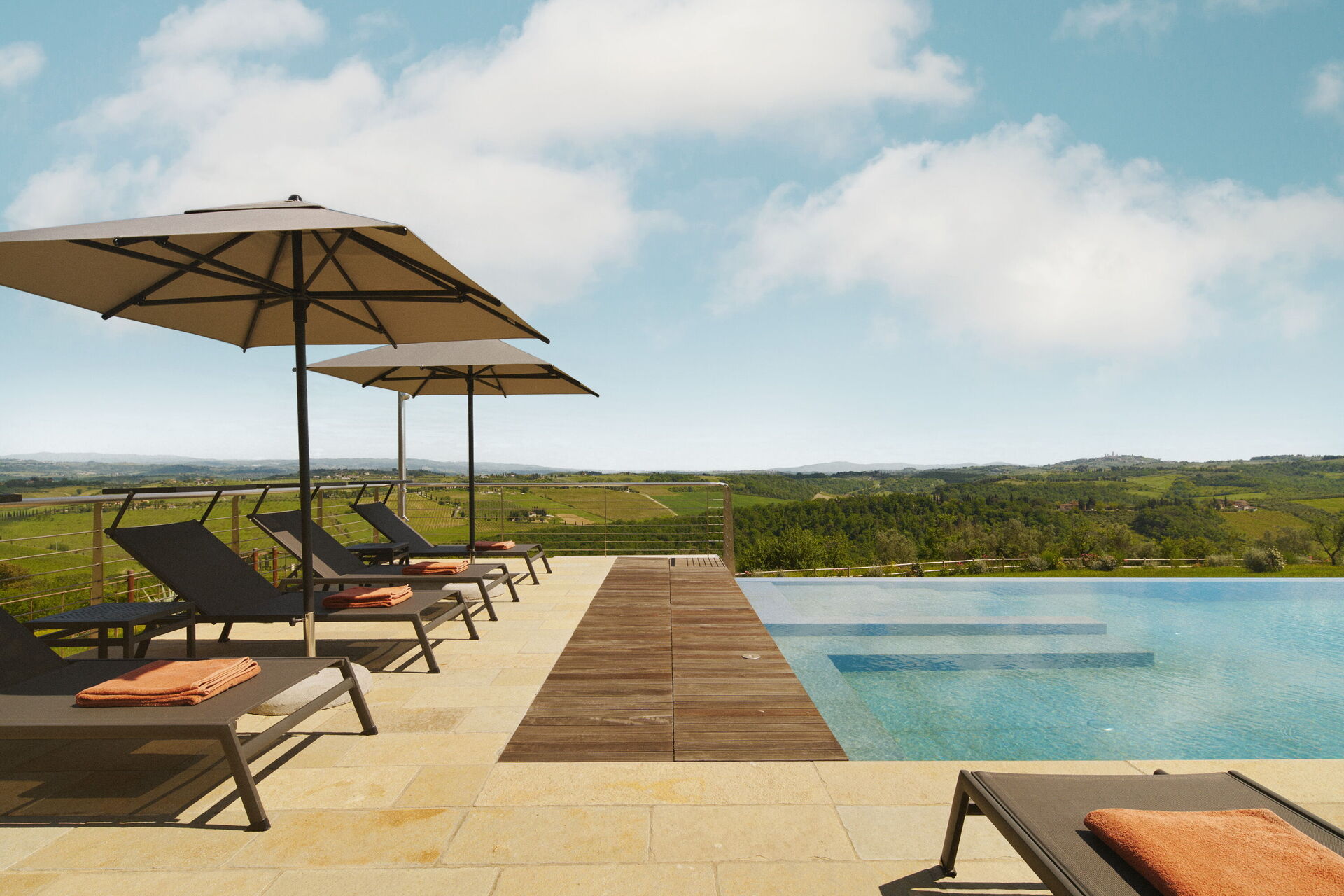 Villa Elmi is a luxury villa in a peaceful, scenic location in the Tuscan hills near San Gimignano.