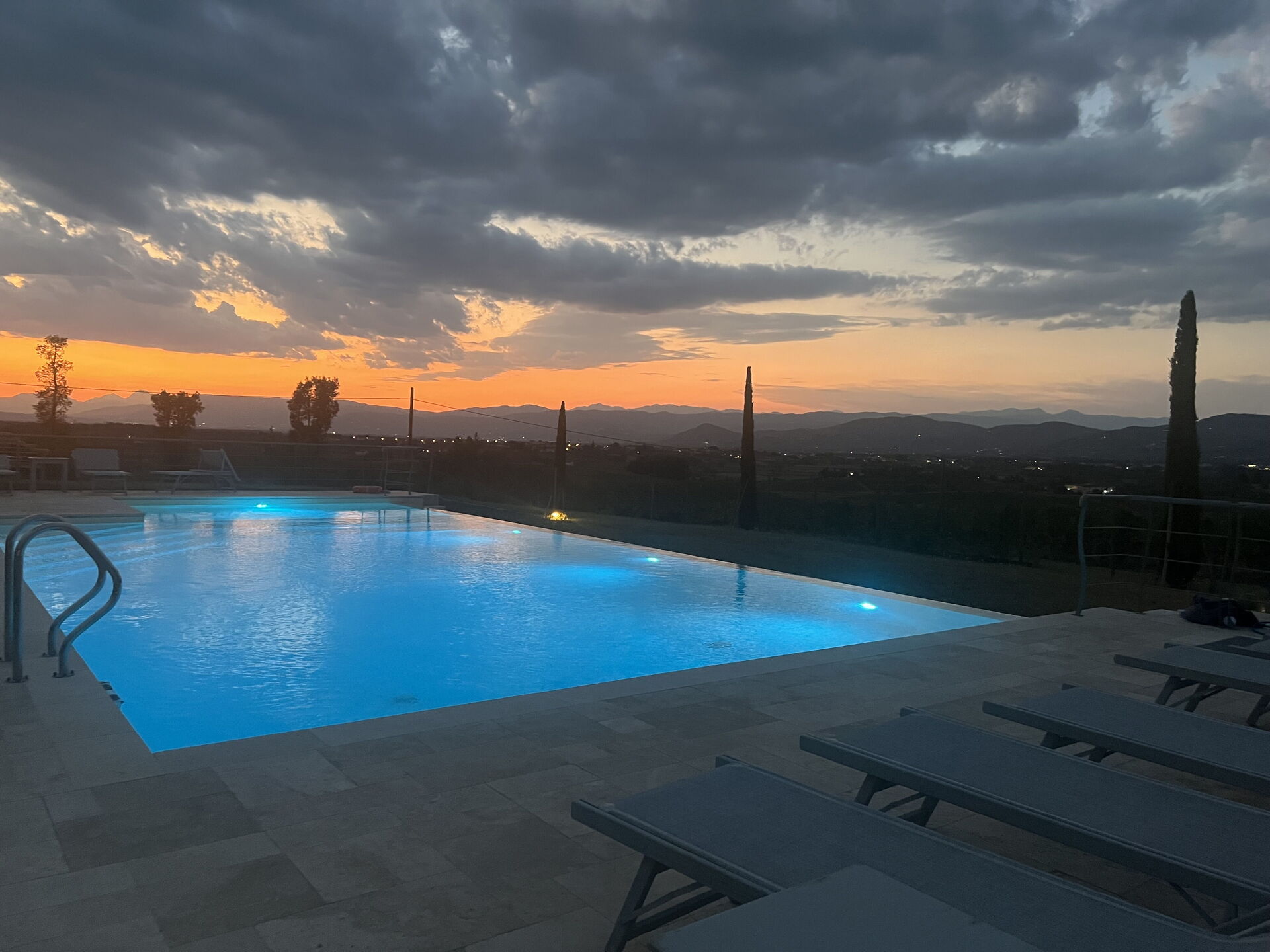 We enjoyed 4 days here and loved it! The place appears new throughout, and the setting is just magical with a spectacular view of the surrounding landscape. The hosts are always around and do everything to make your stay as comfortable as possible plus they have great recommendations for local restaurants too! This is truly very good value for money.