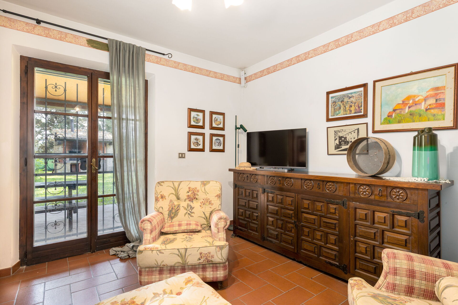 Ground floor: covered terrace furnished with a large table for dining alfresco, entrance, kitchen (oven, fridge-freezer, espresso maker), TV room with fireplace (for decorative purposes only), bedroom with French bed and access to outside, bathroom with shower, living room with sofa bed (single size) and kitchenette unit, WC with washing machine, bedroom with canopy style double bed and private bathroom with shower.