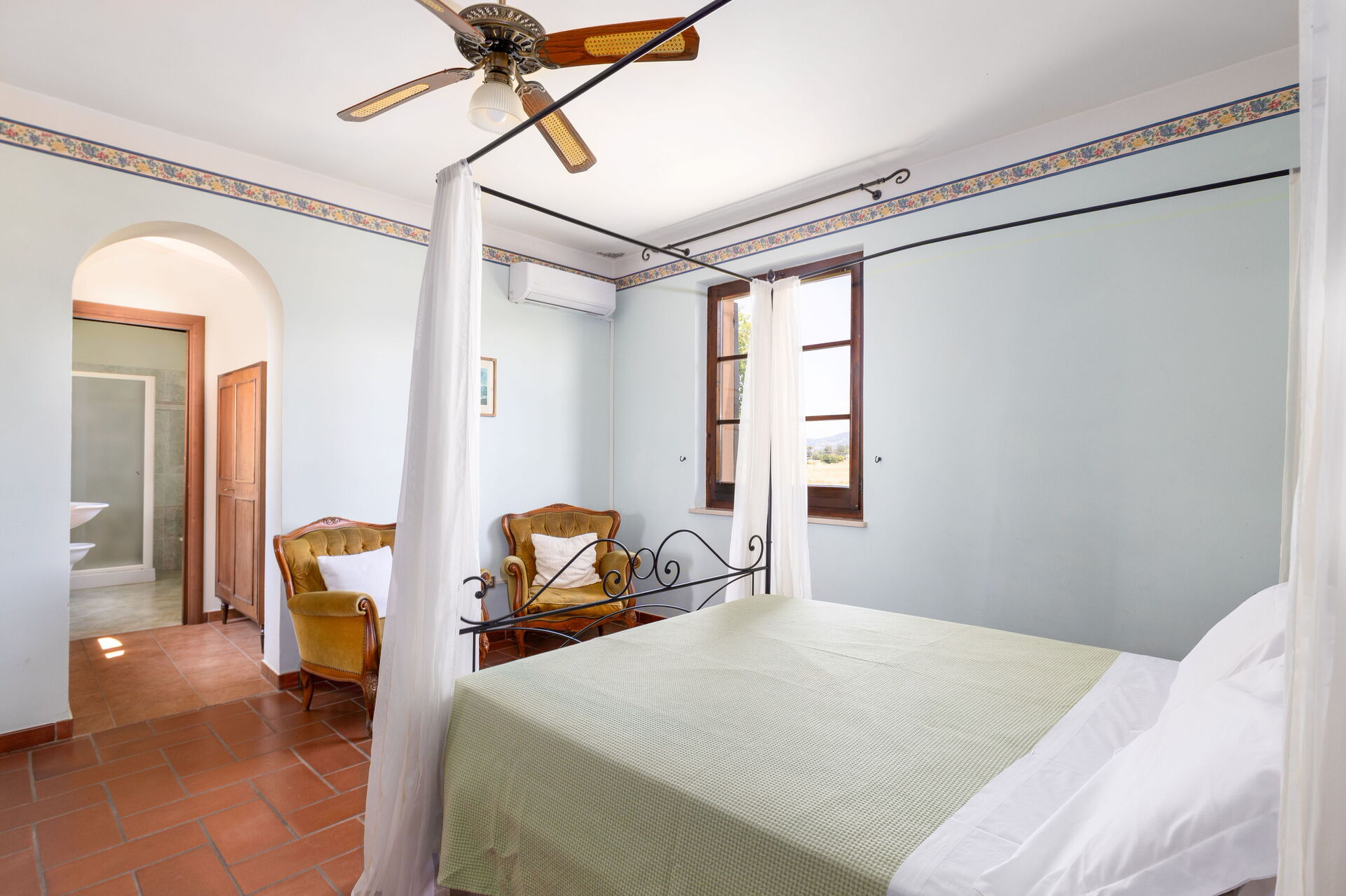 Indoors, a rustic décor characterises the holiday villa and its 7 bedrooms (one of which is a passage to acess another room) can welcome up to 12/15 guests.