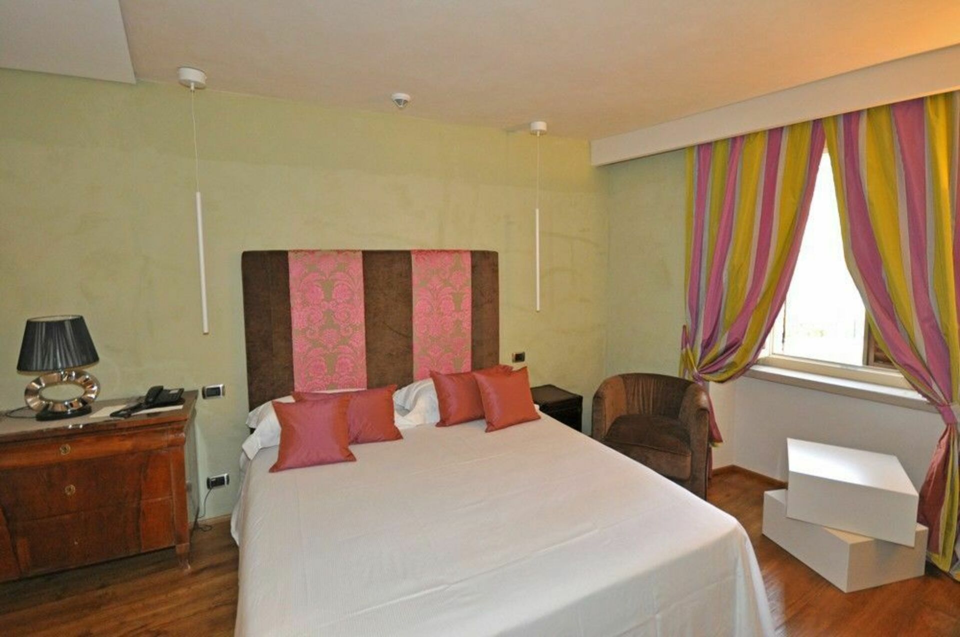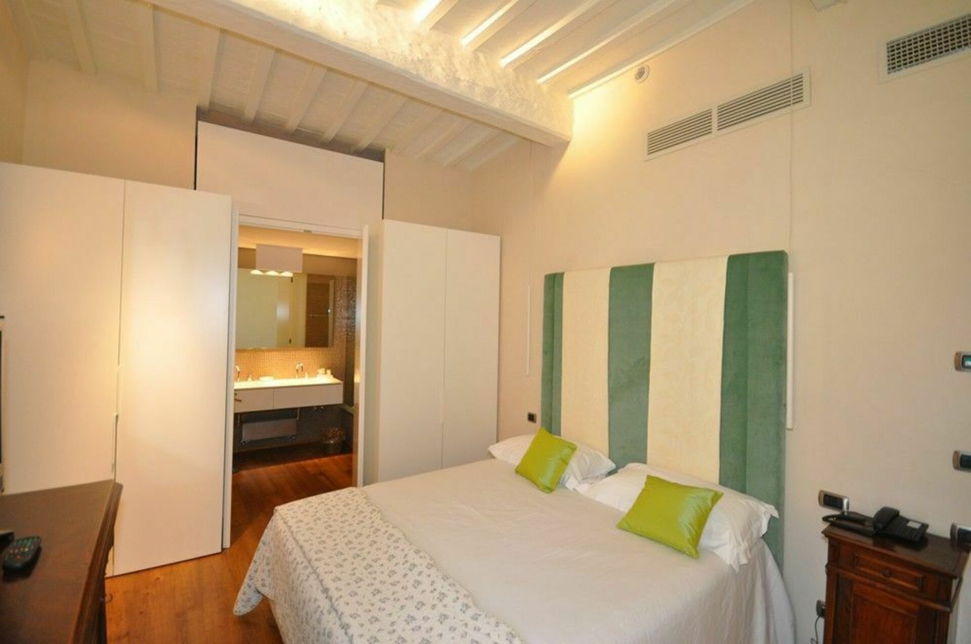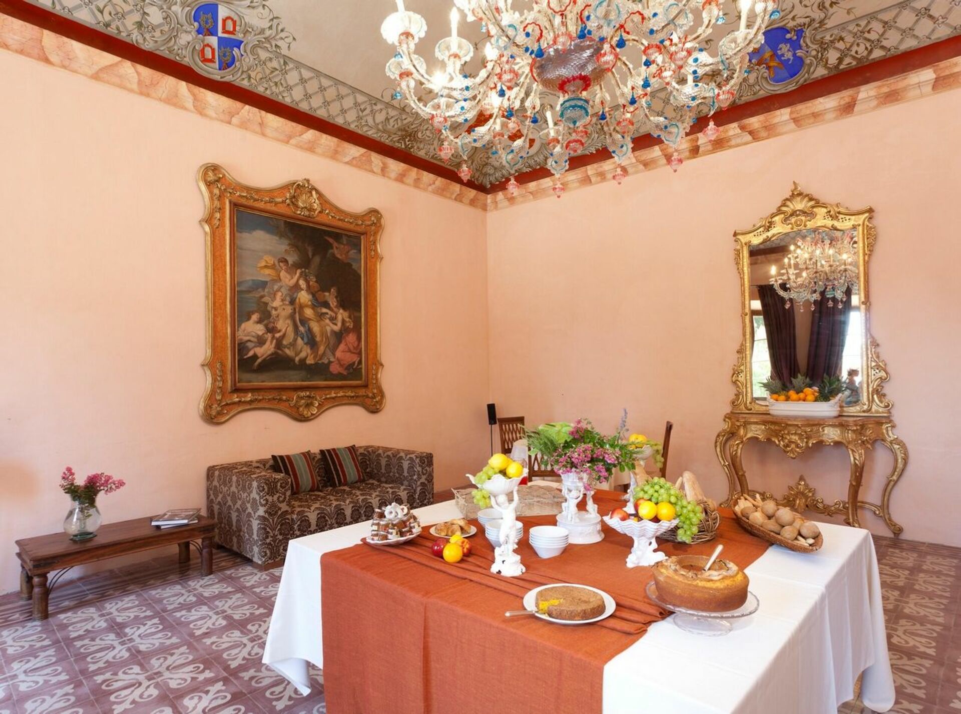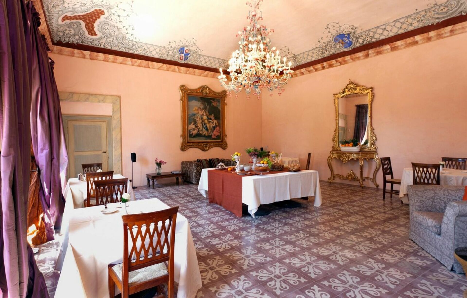 Ground floor: large, frescoed halls with 4 living-rooms (one with satellite TV), 2 toilets, dining-room, kitchen (fridge for drinks, Espresso coffee maker, oven, induction hob, dishwasher).