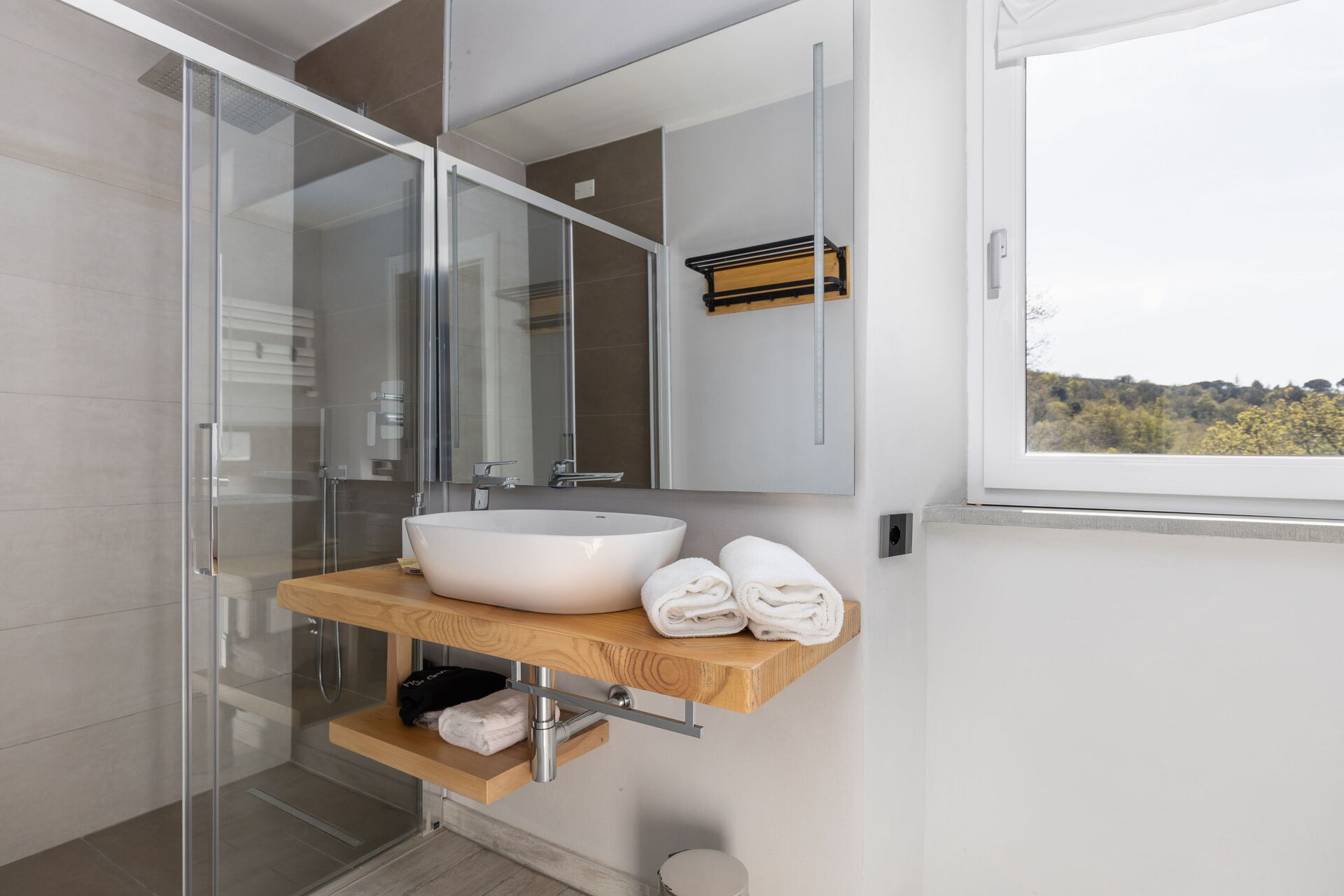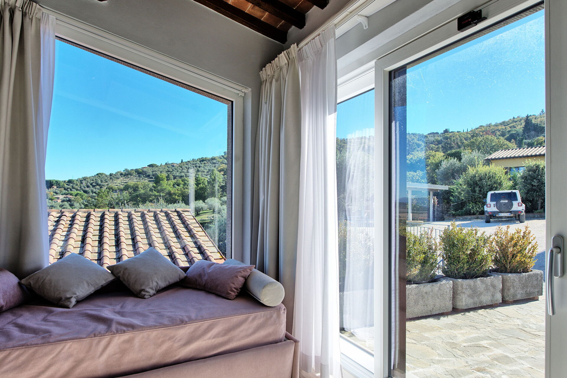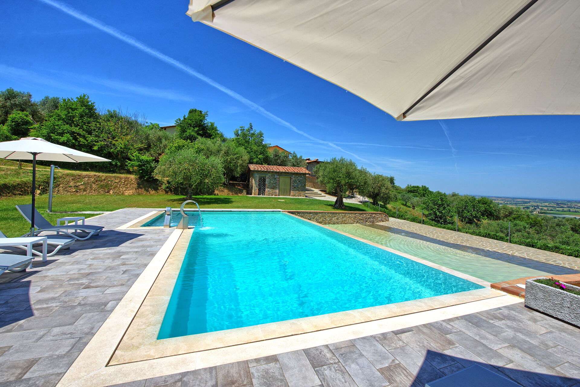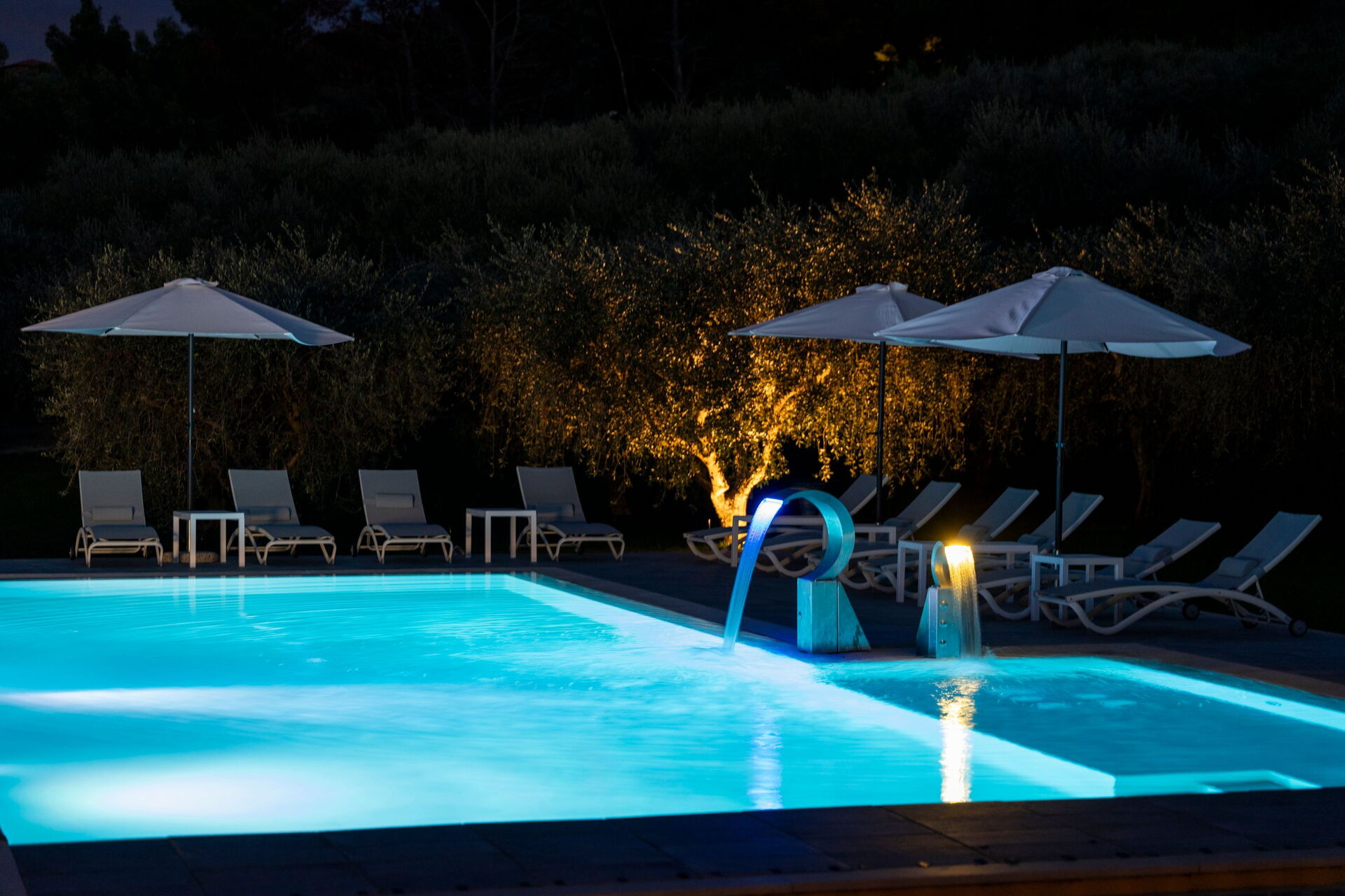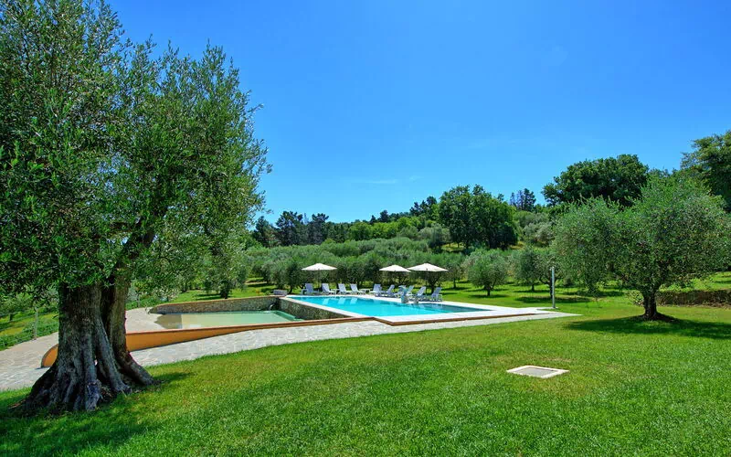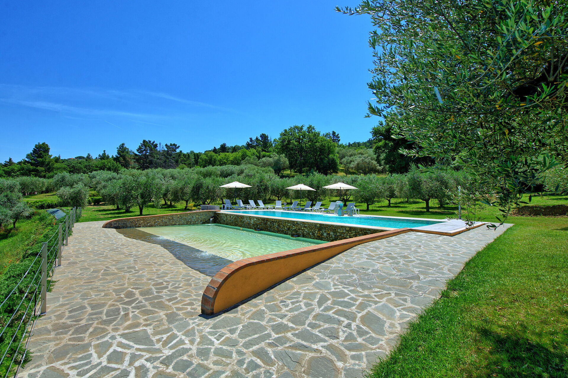 The pool at Villa Acquaviva deserves a special mention: it has sweeping panoramic views and a relaxation area with two waterfalls. Water overflows from the infinity edge into a shallow pool below with easy walk-in entry. This second pool is perfect for children. An automatic cover keeps the pool clean and maintains a pleasant temperature even in spring and autumn.