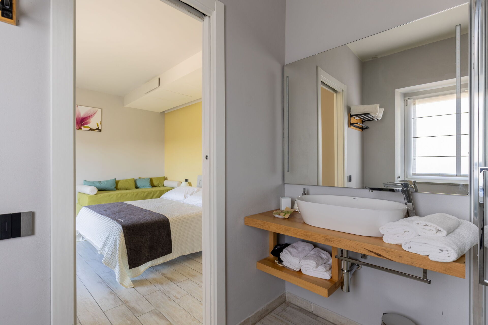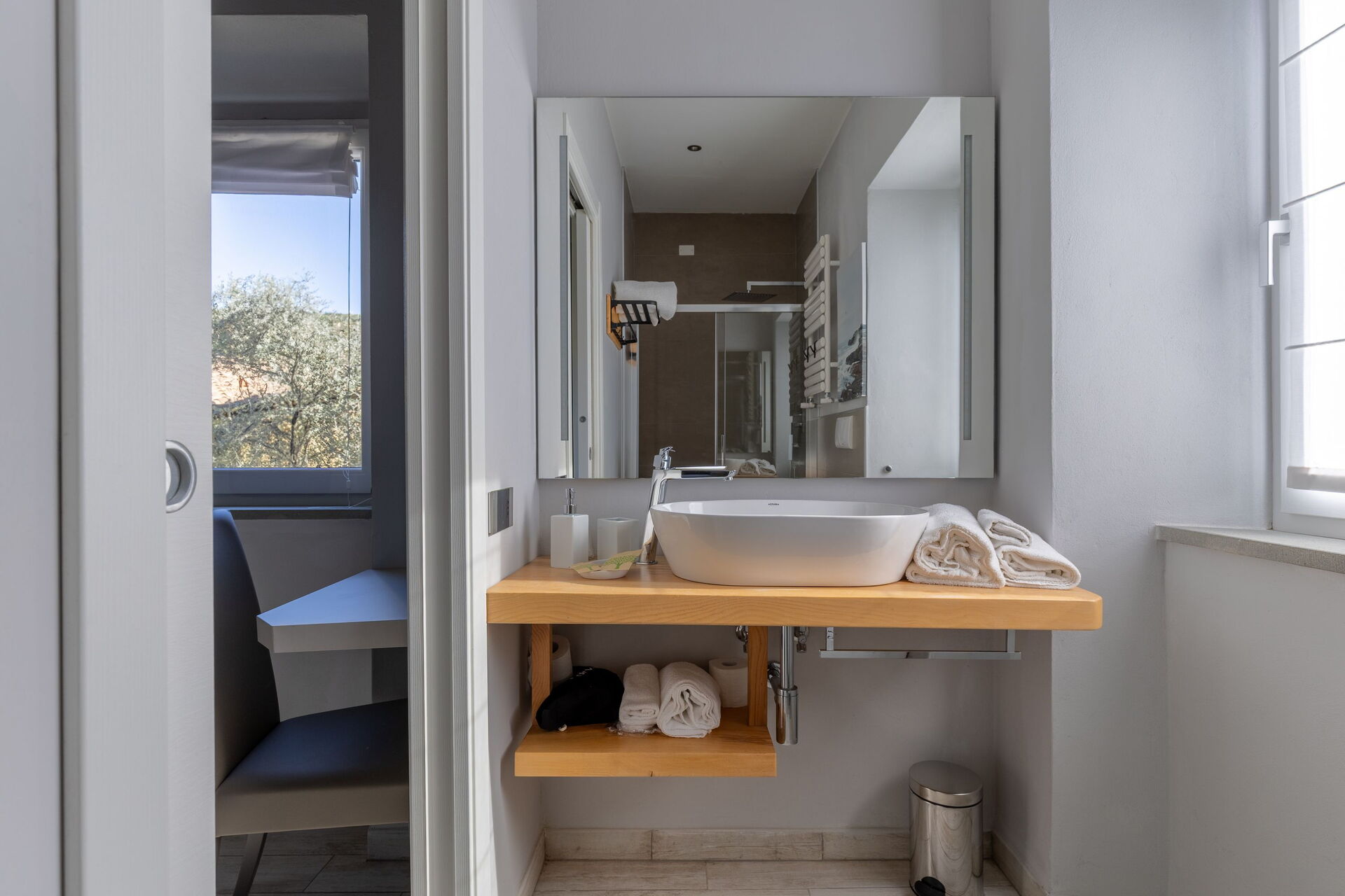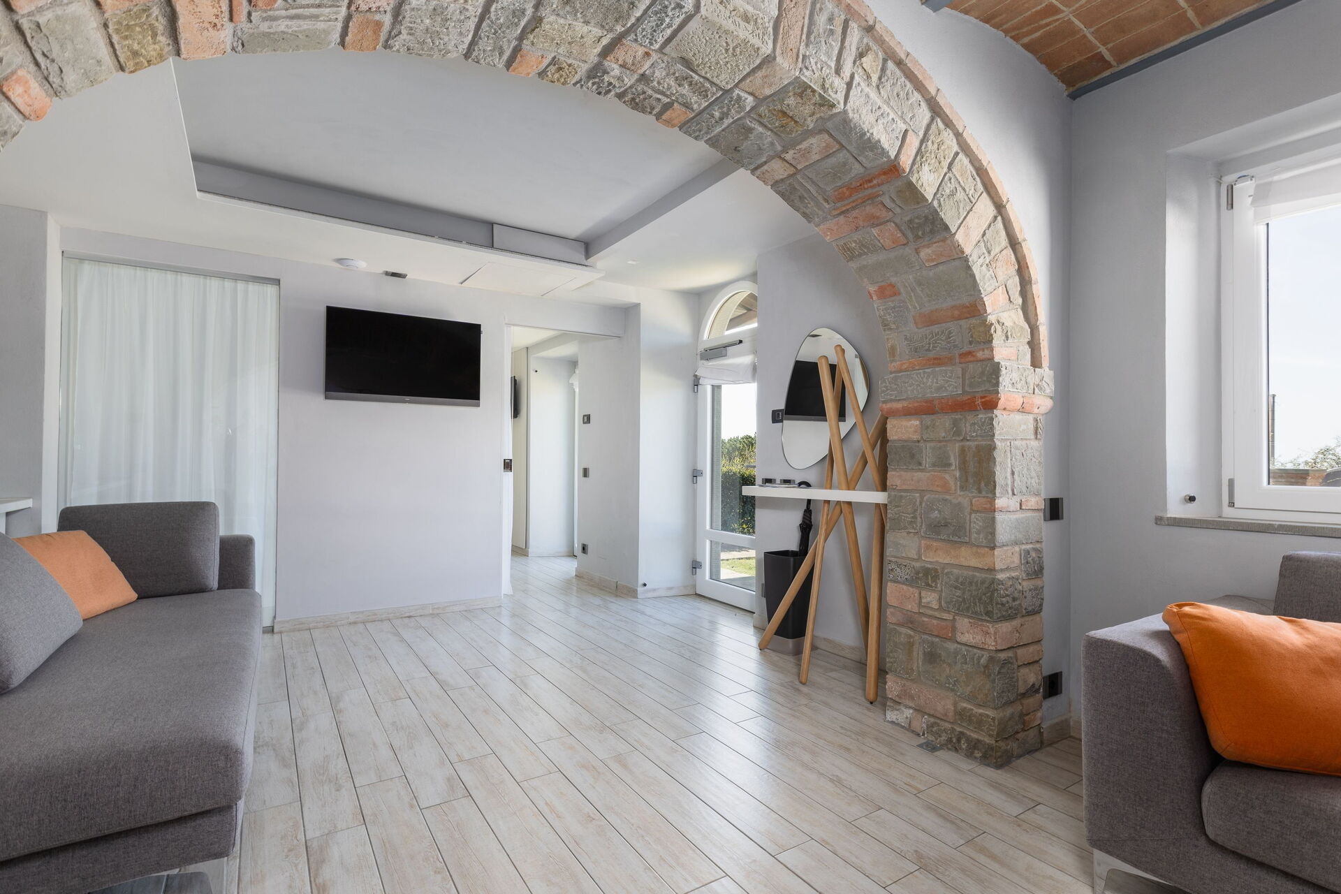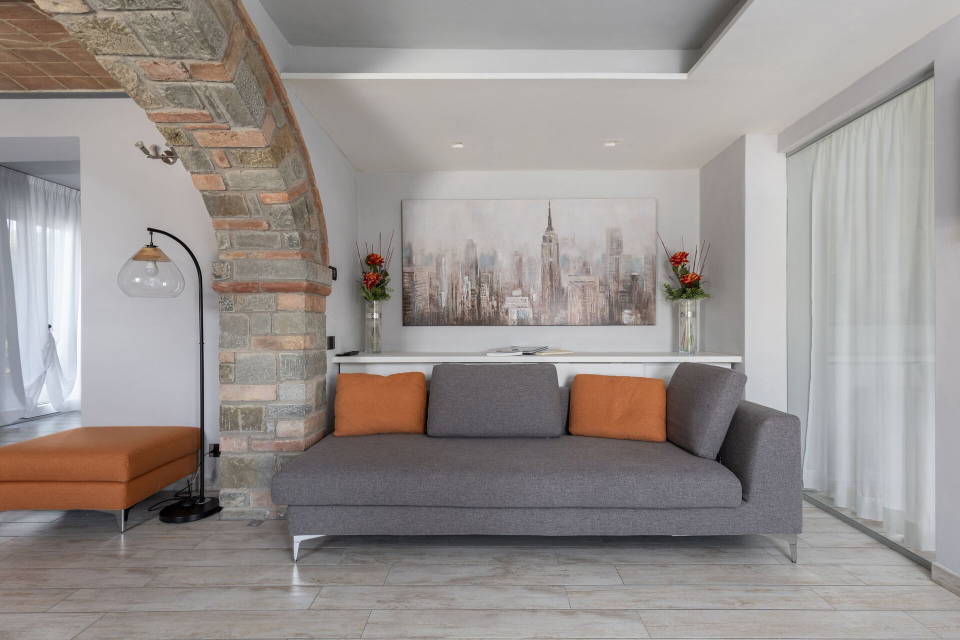The pool at Villa Acquaviva deserves a special mention: it has sweeping panoramic views and a relaxation area with two waterfalls. Water overflows from the infinity edge into a shallow pool below with easy walk-in entry. This second pool is perfect for children. An automatic cover keeps the pool clean and maintains a pleasant temperature even in spring and autumn.