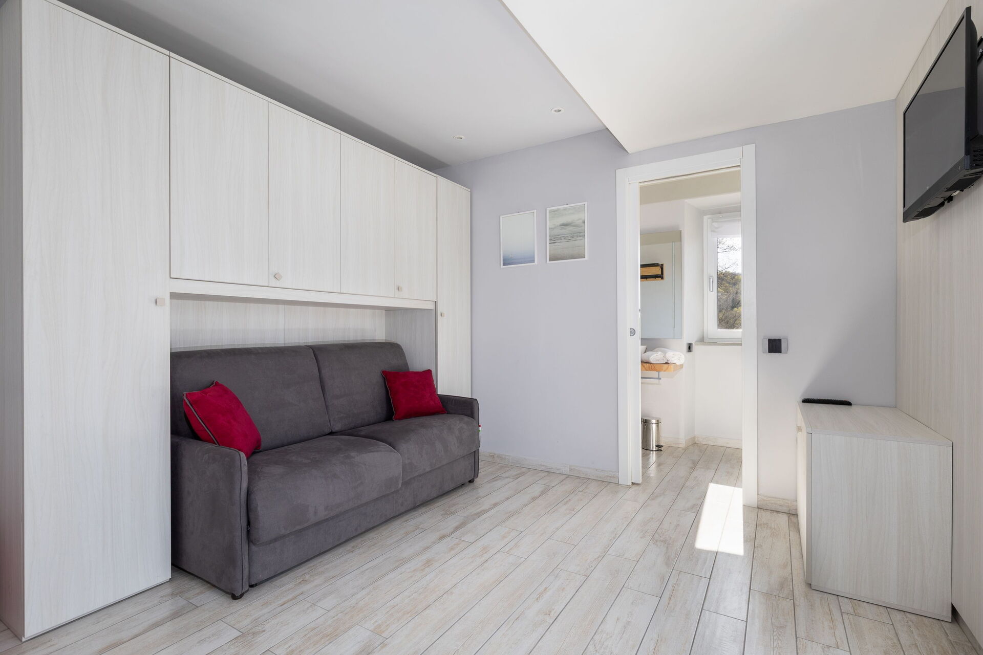 Ground floor: living area with living room (TV), dining area and kitchen (oven, freezer, dishwasher, microwave, toaster, espresso coffee maker); WC, bedroom with double sofa bed and private bathroom with shower.