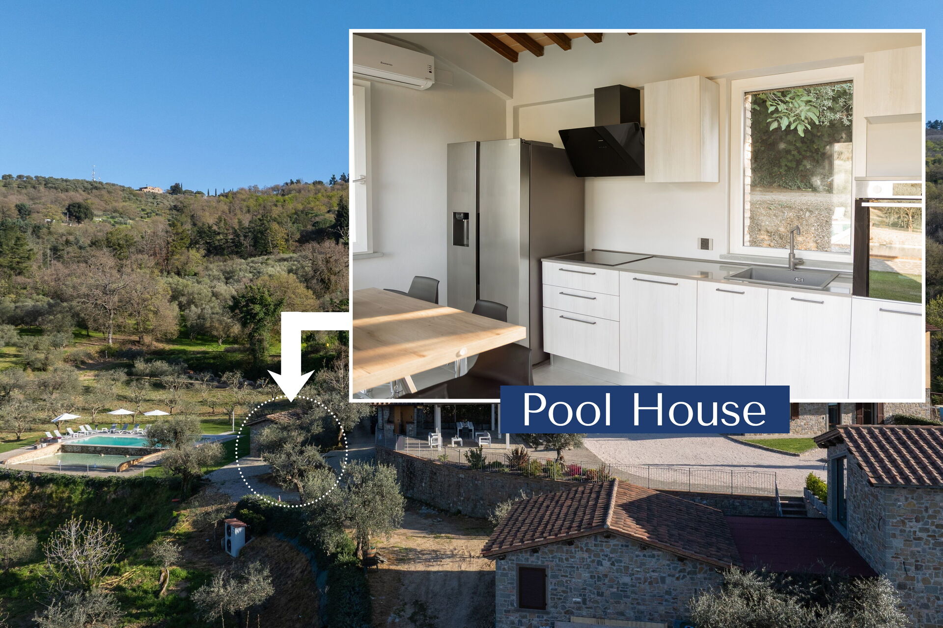 • Pool house with kitchen corner (induction cooktop, oven, refrigerator, dishwasher)