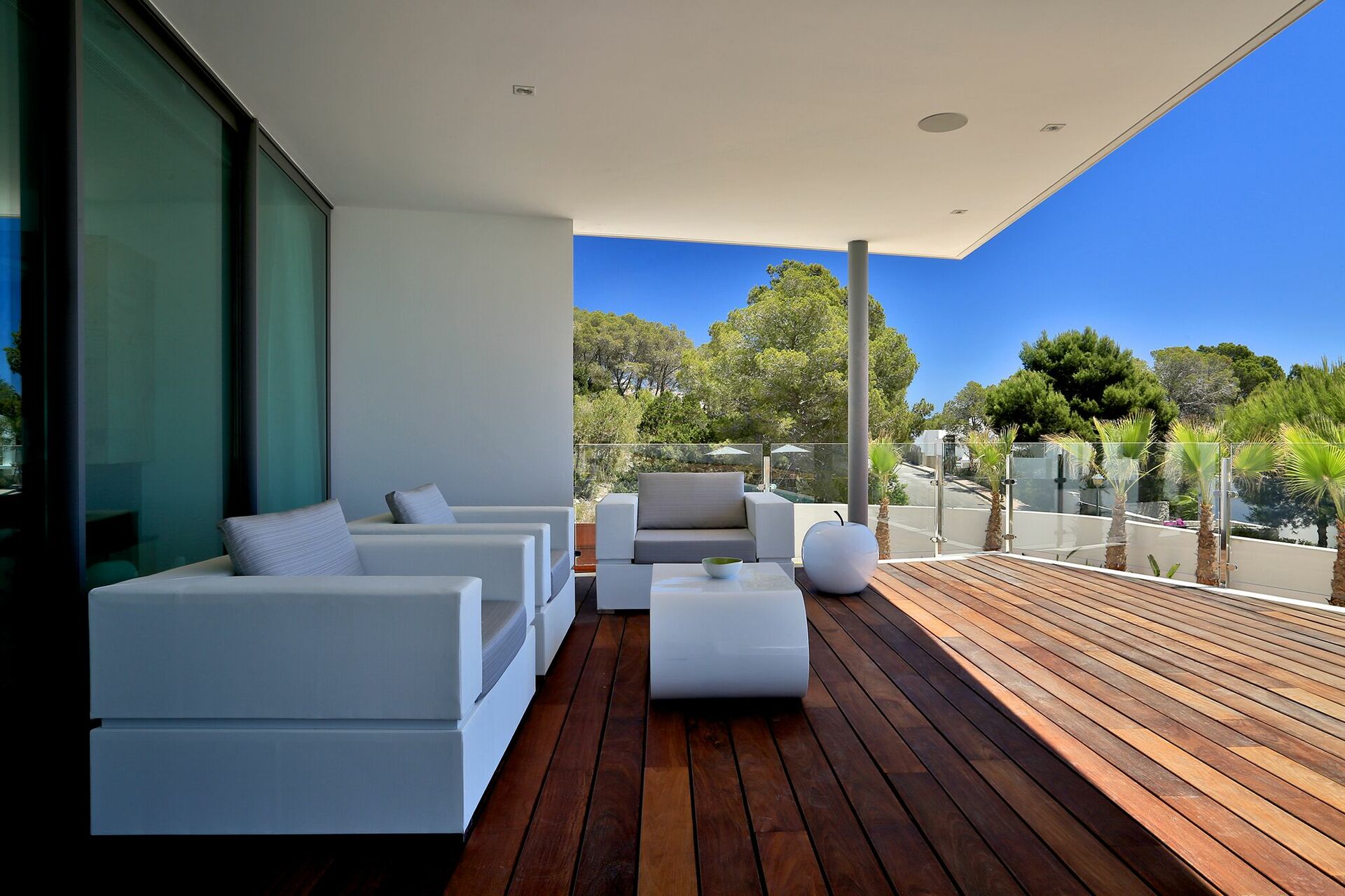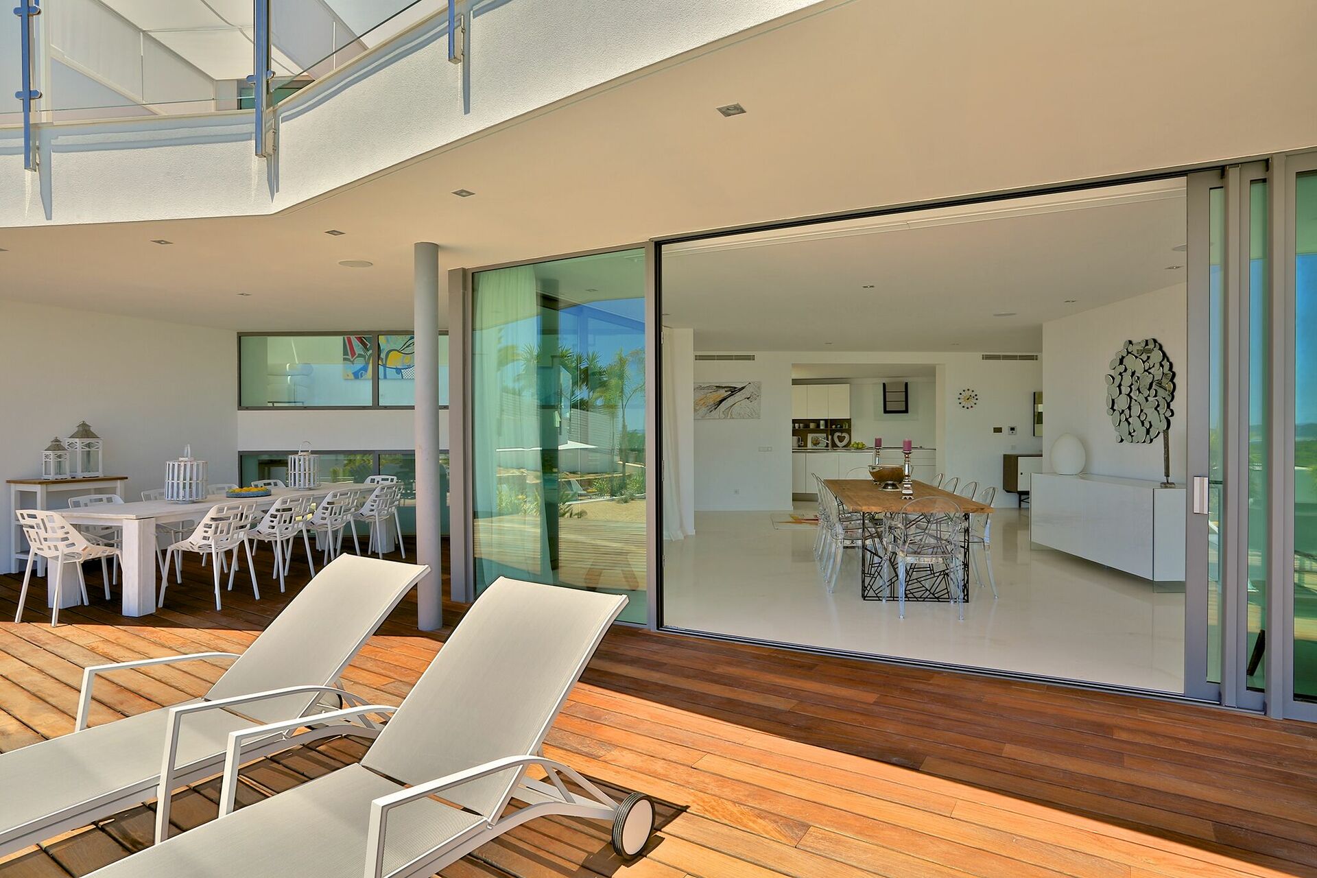 Alegre Belle’s most distinctive feature is its outdoor space, with large terraces looking out onto the surrounding nature, and marvelous views of the sea and crystal-clear waters of Es Torrent. An outdoor living area furnished with armchairs, tables and chairs is ideal for lunches, dinners and drinks with your friends and family.