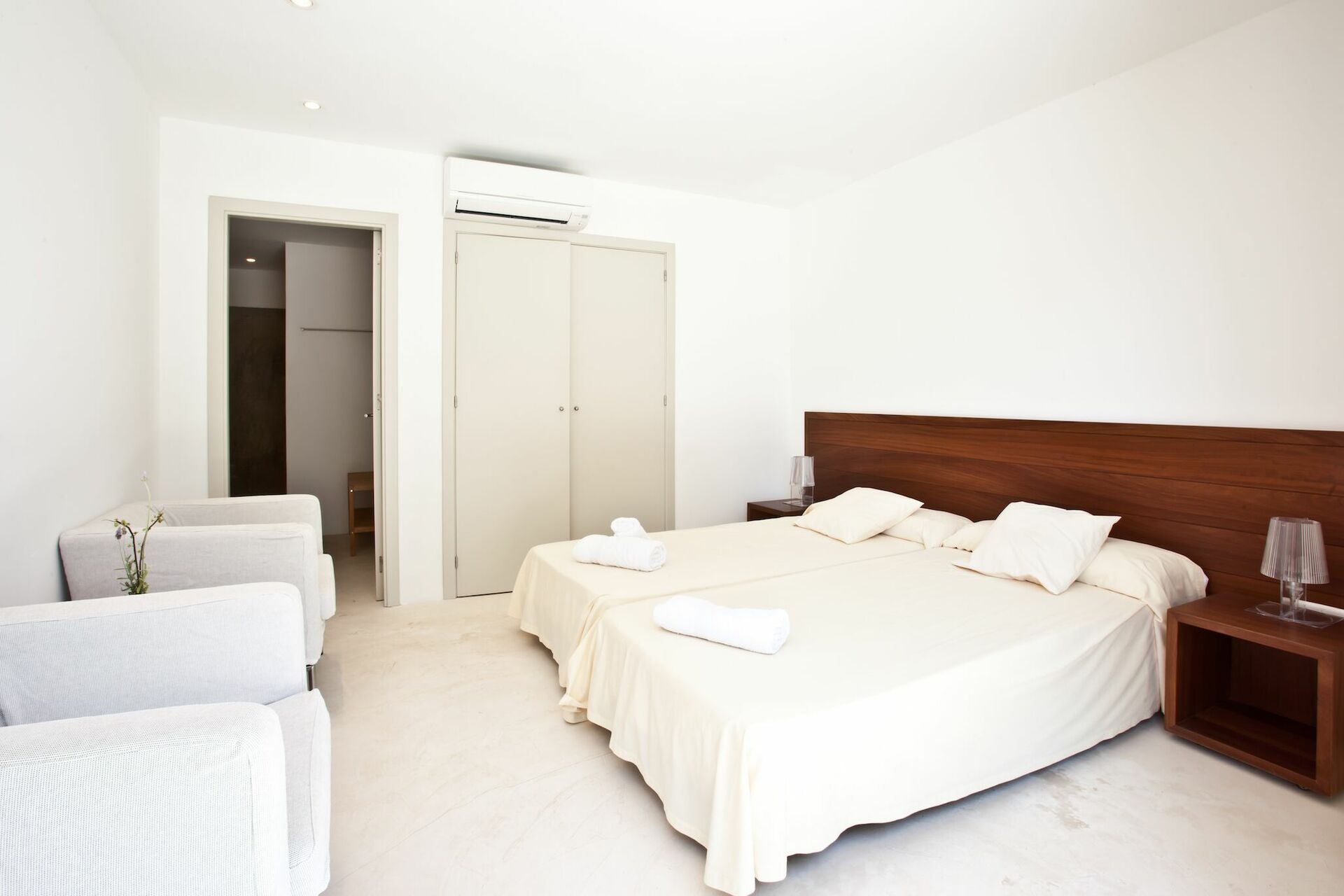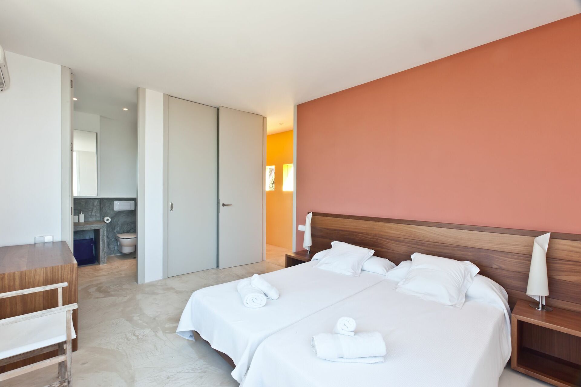 Pep Calo spans two floors, offers many common areas, and can accommodate up to 12 people in its 6 bedrooms, each with private bathroom. To guarantee utmost relaxation and convenience, the villa is equipped with all modern amentities. The minimalist interiors are tastefully furnished.